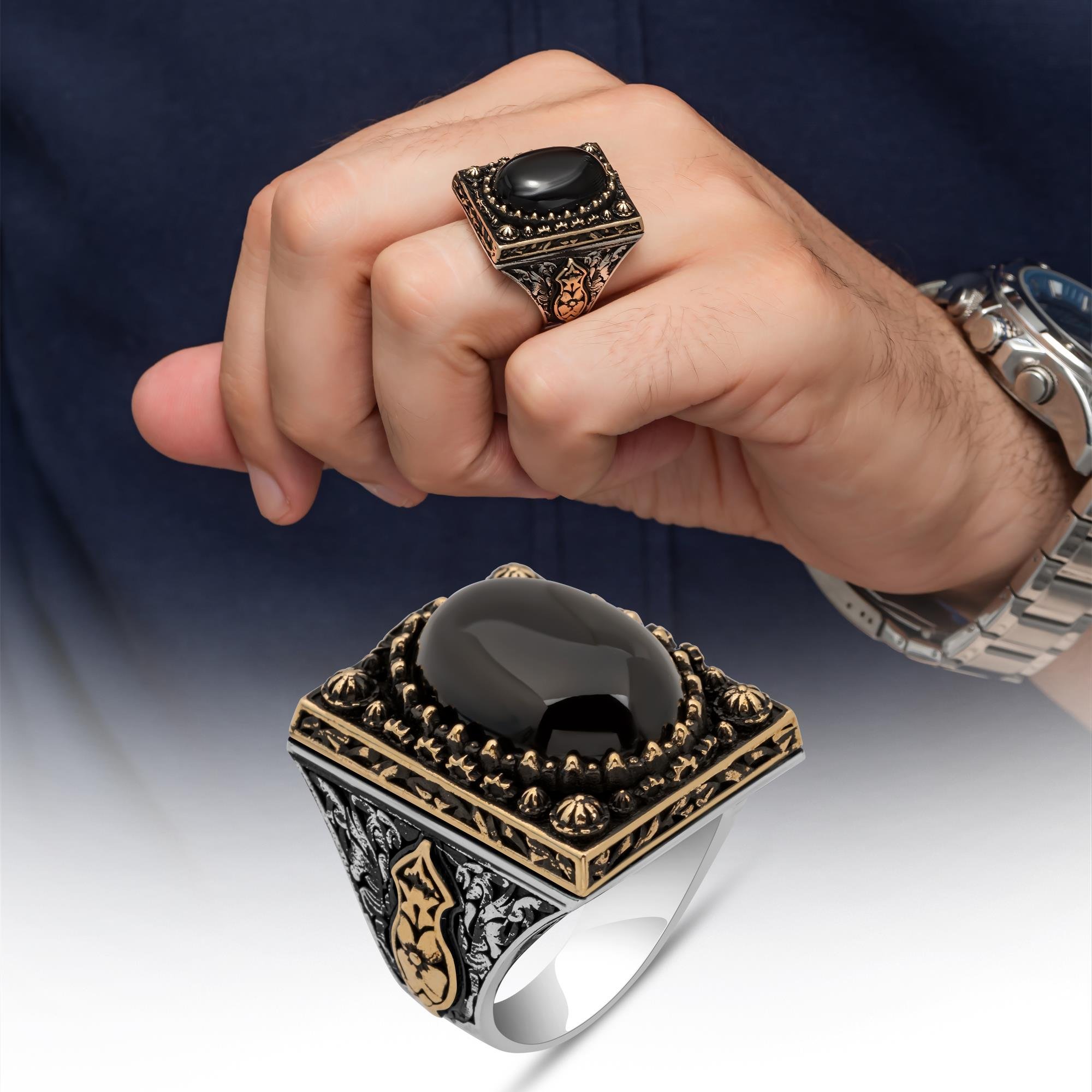 Siyah Oniks Taşlı 925 Gümüş Yüzük (GNS58812)